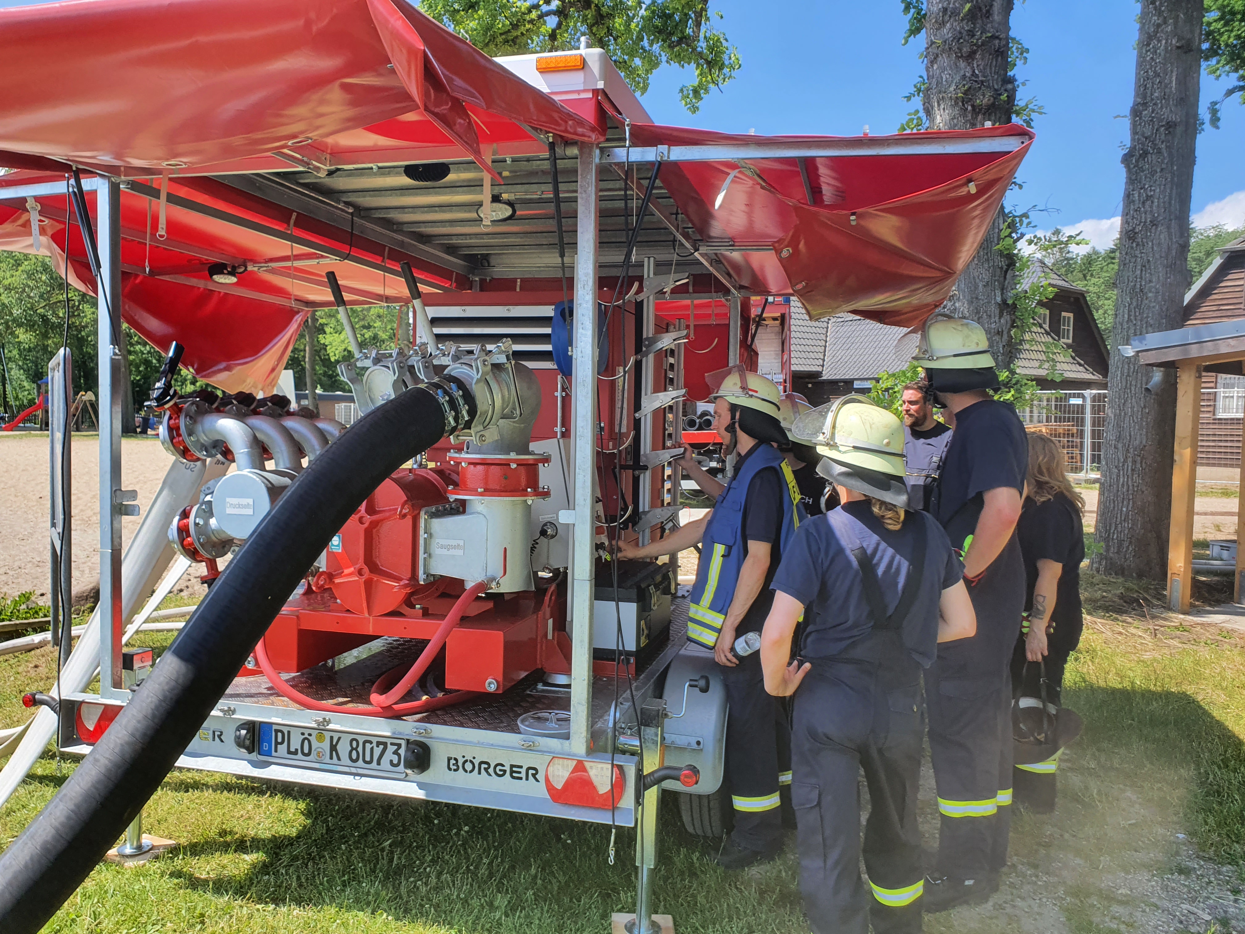 Am 19.06.2021 hat sich der 1. Zug der 8. Feuerwehrbereitschaft des Kreises Plön getroffen, um mit der Hochleistungspumpe 5000 (HLP 5000) zu üben. Nachdem alle Kameraden/innen einen Corona Schnelltest in ihren Heimatwehren durchgeführt haben, hat sich der 1. Zug auf dem Ascheberger Parkplatz in Plön getroffen.